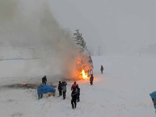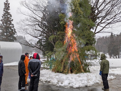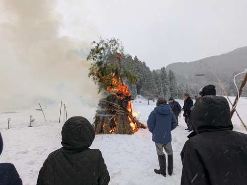 「さいの神」行事は、今年も早川各地区(新町、越、谷根、湯川内、新道、高谷根)であり、イカや餅などを焼いて無病息災を祈りました。