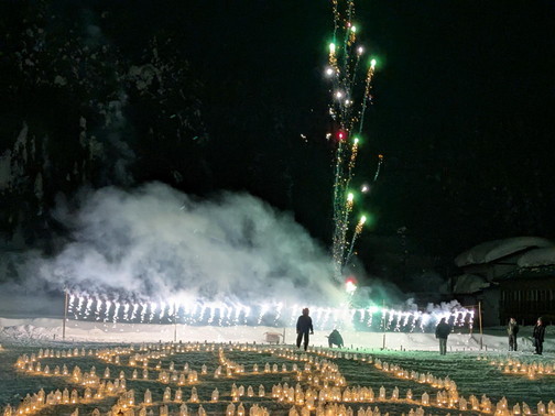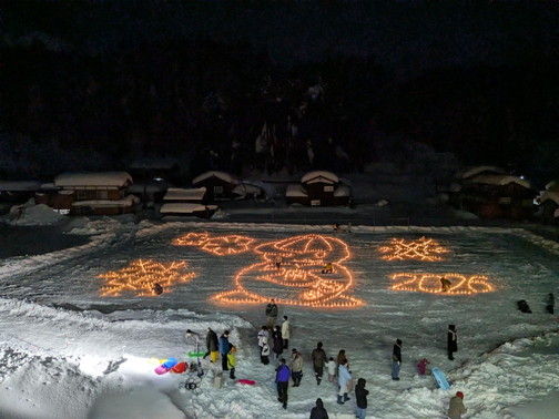 また、31日は「上南ふれ愛キャンドル祭り」が開催され、キャンドルアートの「雪太郎」は、南能生小学校の公式キャラクターとのことです。一つひとつの灯りがつながり、温かさを感じる幻想的な光景でした。